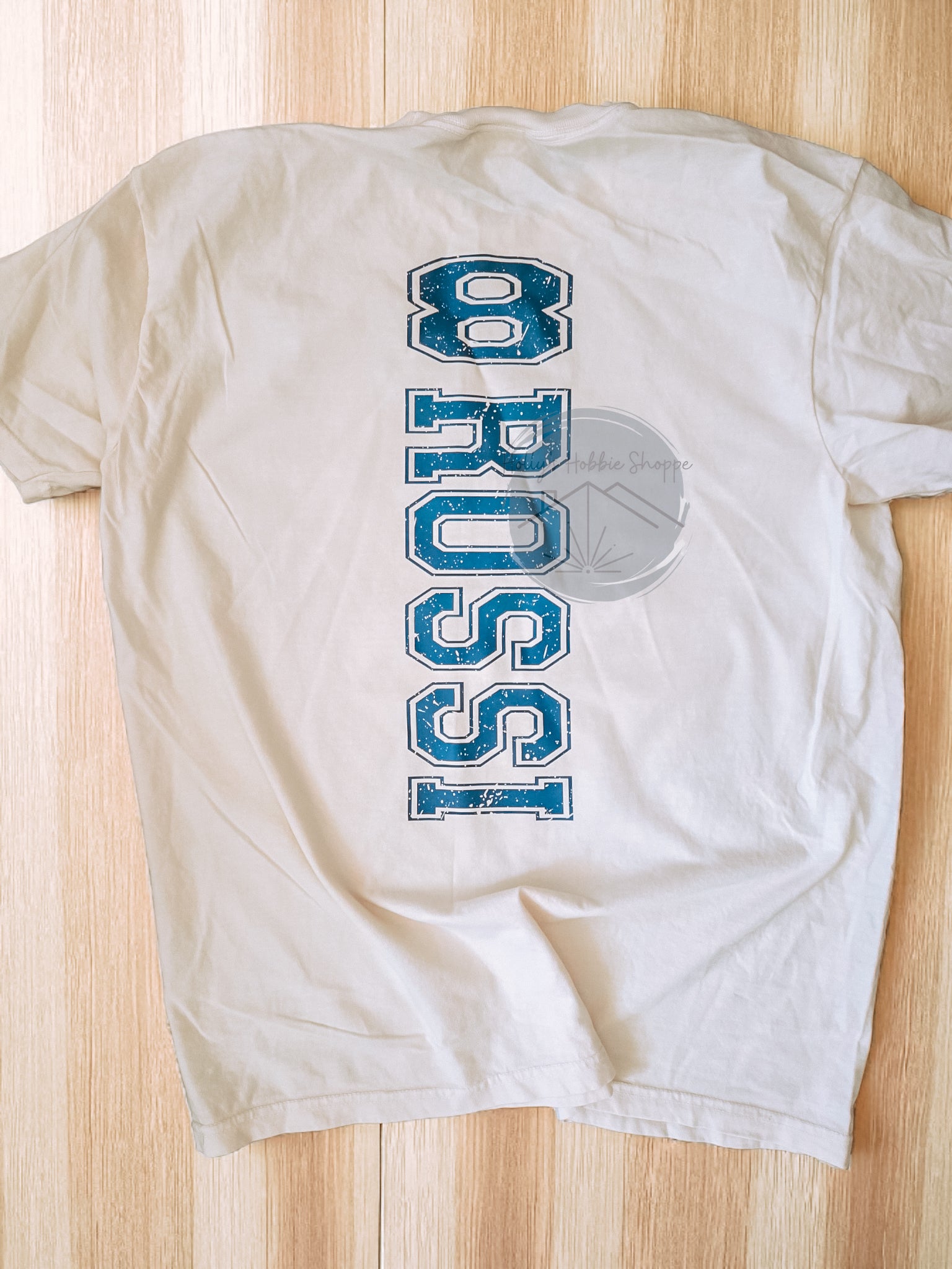 IVORY COLOR base with coordinating colors for design. Please be specific in team and mascot/sports colors. Note: the design is going to end up vintage-y and more muted than normal for this look!